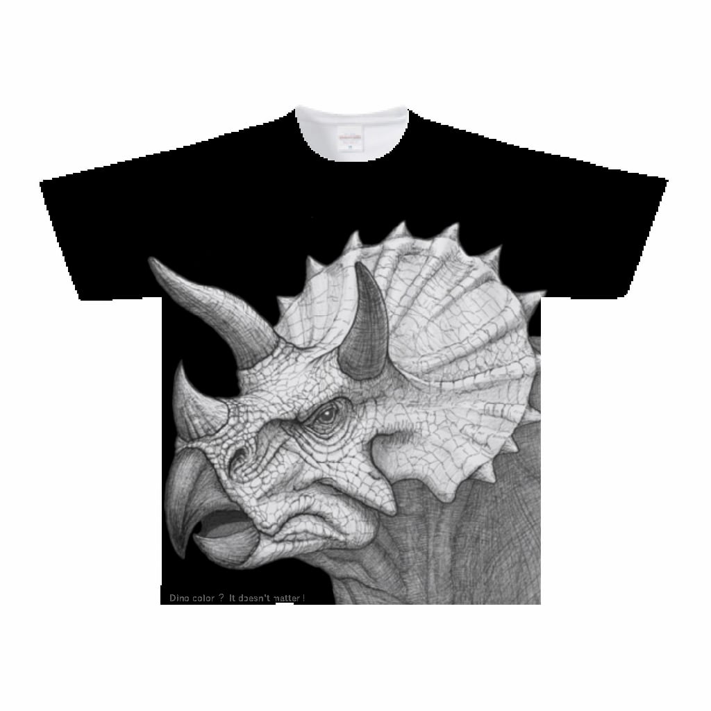 恐竜全面印刷黒Tシャツ Sサイズ トリケラトプス Dinosaur Torideratops Big print Jurassic T-shirt