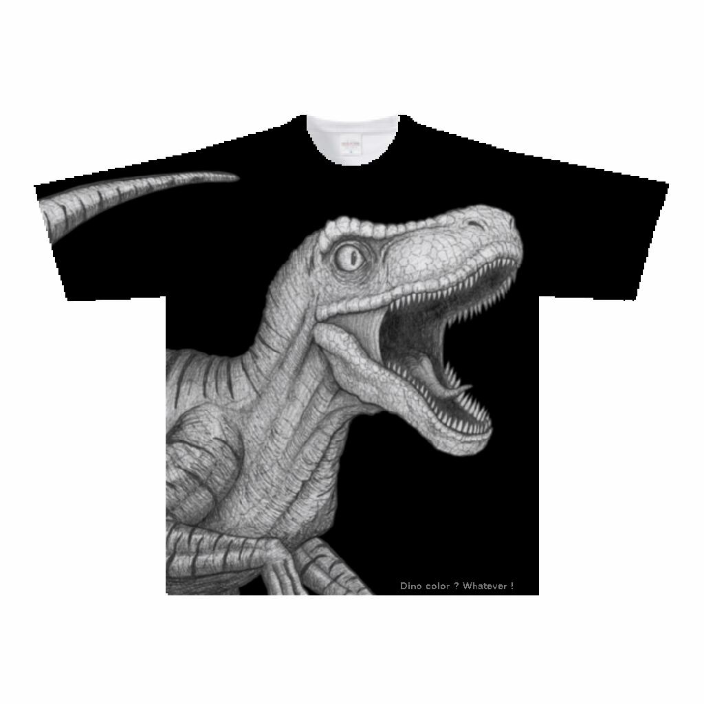 恐竜全面印刷黒Tシャツ Lサイズ ヴェロキラプトル Dinosaur Velociraptor Big print Jurassic T-shirt