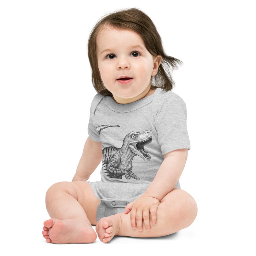 海外発送 恐竜 ベビー 半袖ロンパース・カバーオール ヴェロキラプトル